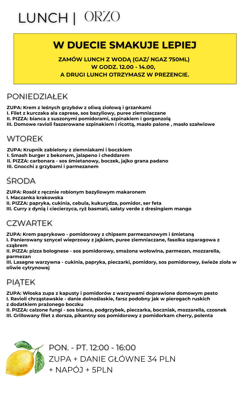 LUNCH MENU GŁÓWNE ŚNIADANIANAPOJE